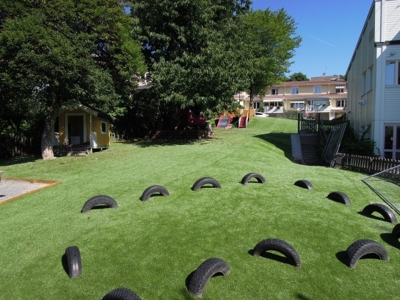 Kika in detta läckra val av konstgräs. Vi tog oss an att fräscha upp Fagerstrand förskola. Inga mer leriga barn.